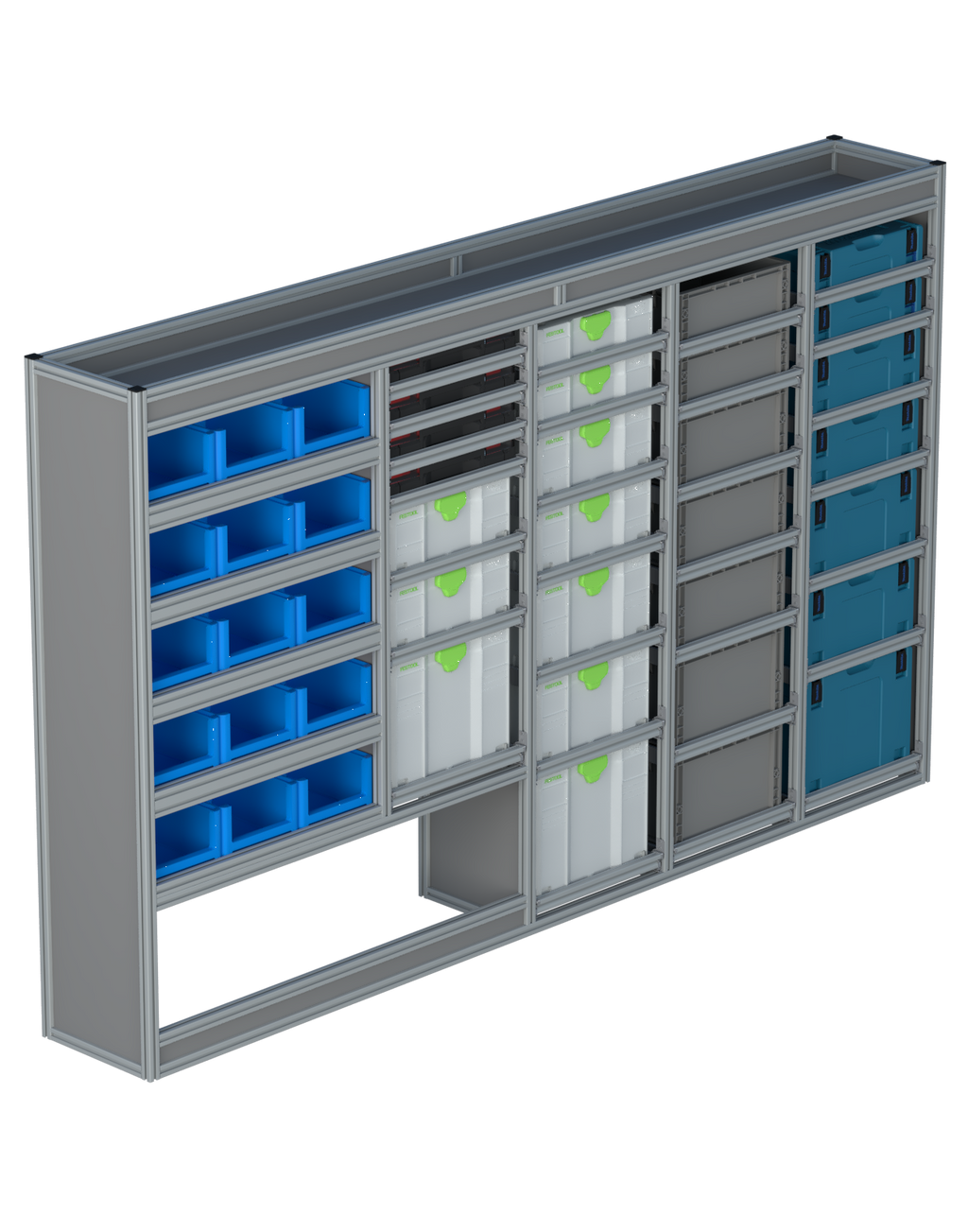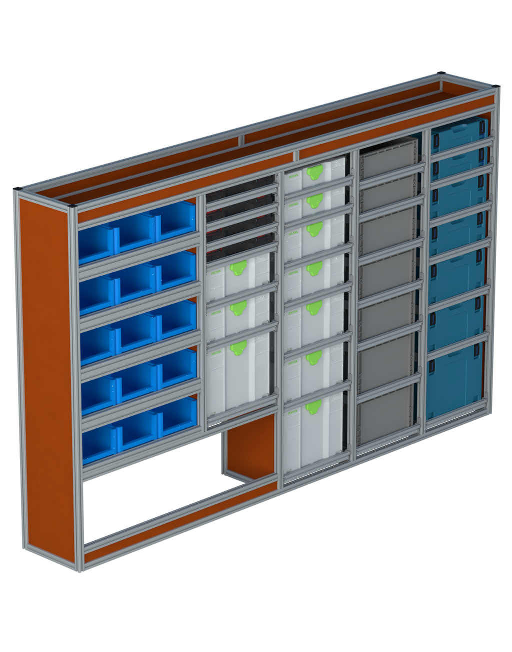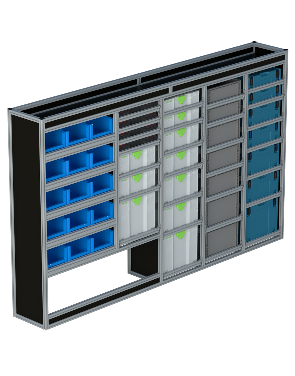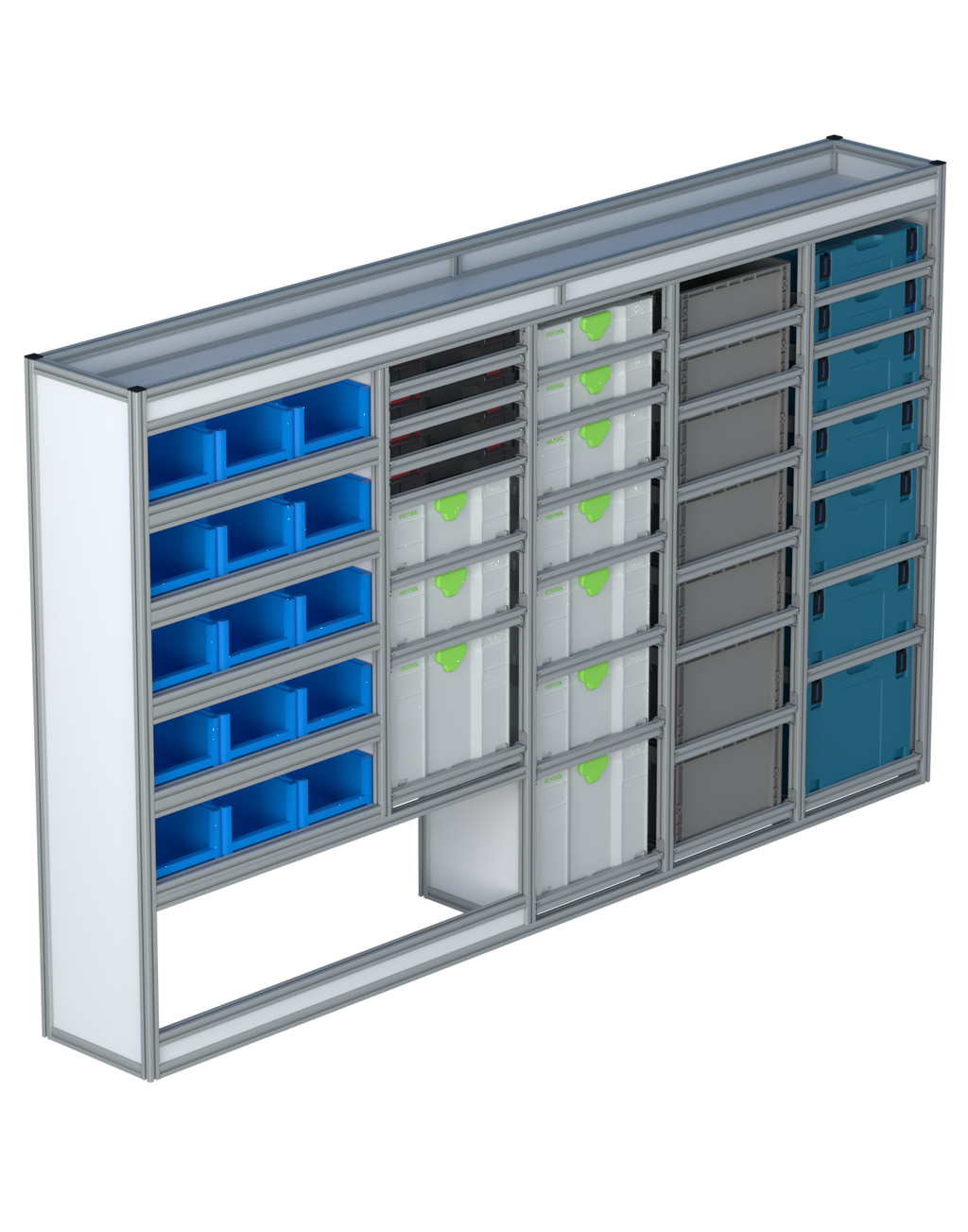 | Open vakken: | 5 open vakken met optionele magazijnbakken |