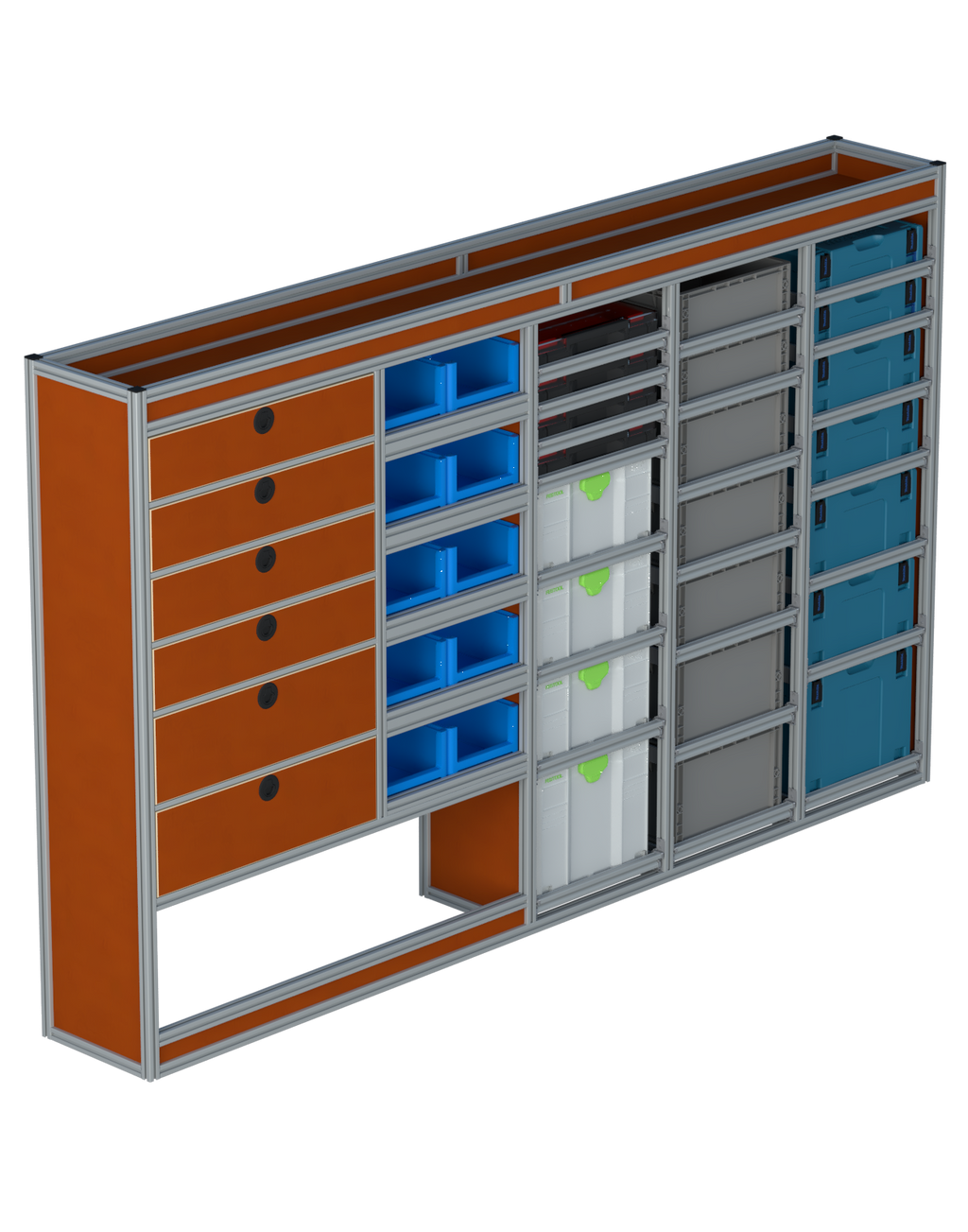 | Open vakken: | 5 open vakken met optionele magazijnbakken |