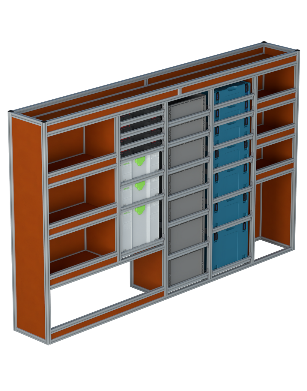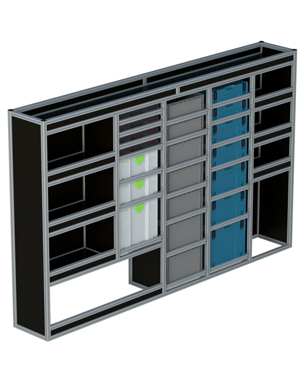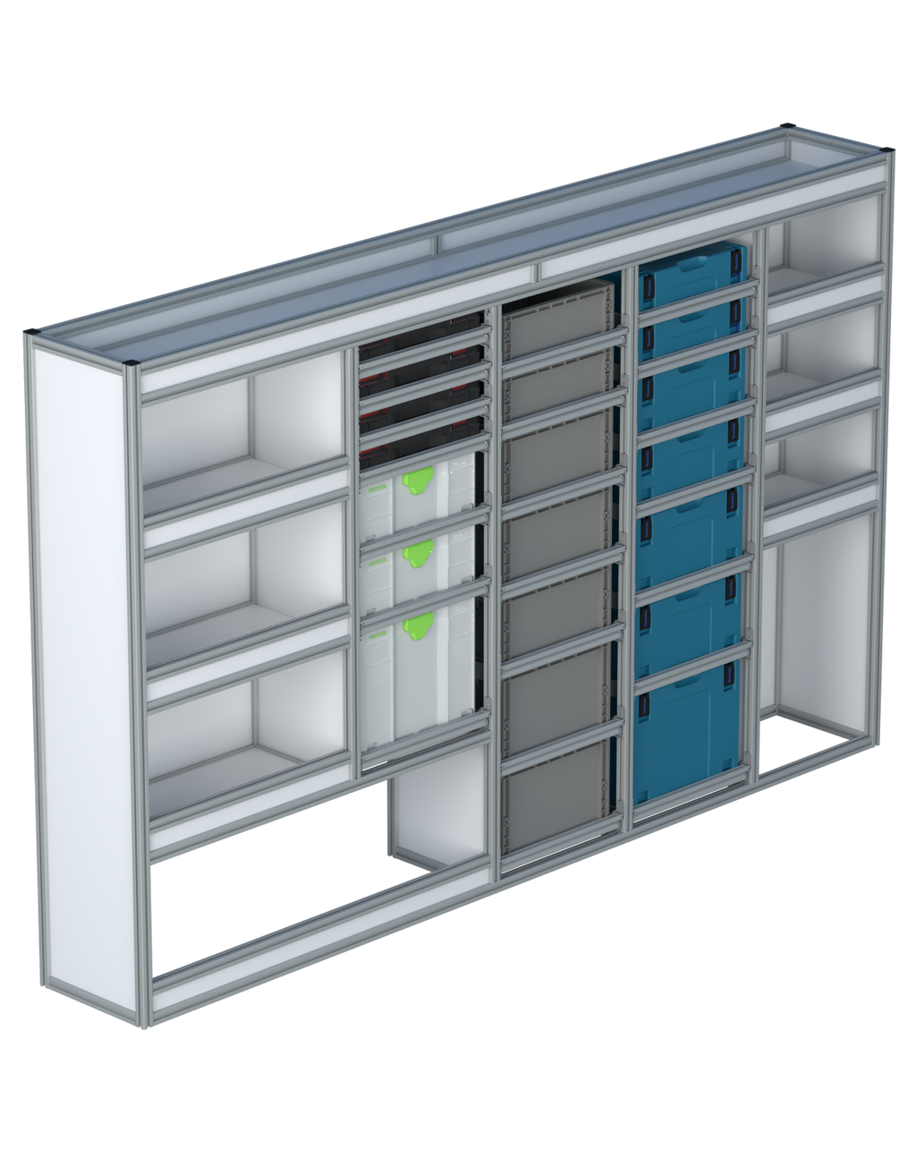 Alle lades zijn volledig traploos in hoogte verstelbaar en zijn later makkelijk weg te halen of bij te plaatsen. De lades zijn standaard voorzien van een goed doordachte ladevergrendeling om het open schuiven tijdens het rijden te voorkomen met een hoog gebruiksgemak.