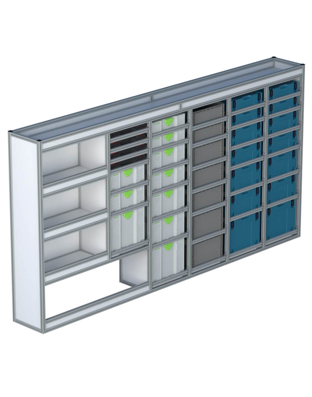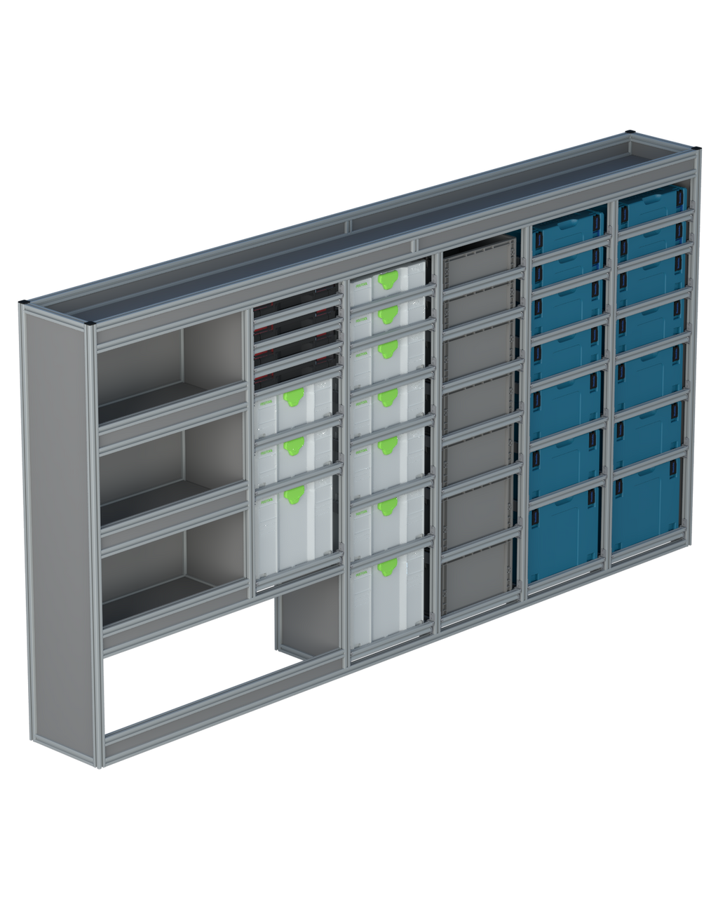 Alle lades zijn volledig traploos in hoogte verstelbaar en zijn later makkelijk weg te halen of bij te plaatsen. De lades zijn standaard voorzien van een goed doordachte ladevergrendeling om het open schuiven tijdens het rijden te voorkomen met een hoog gebruiksgemak.