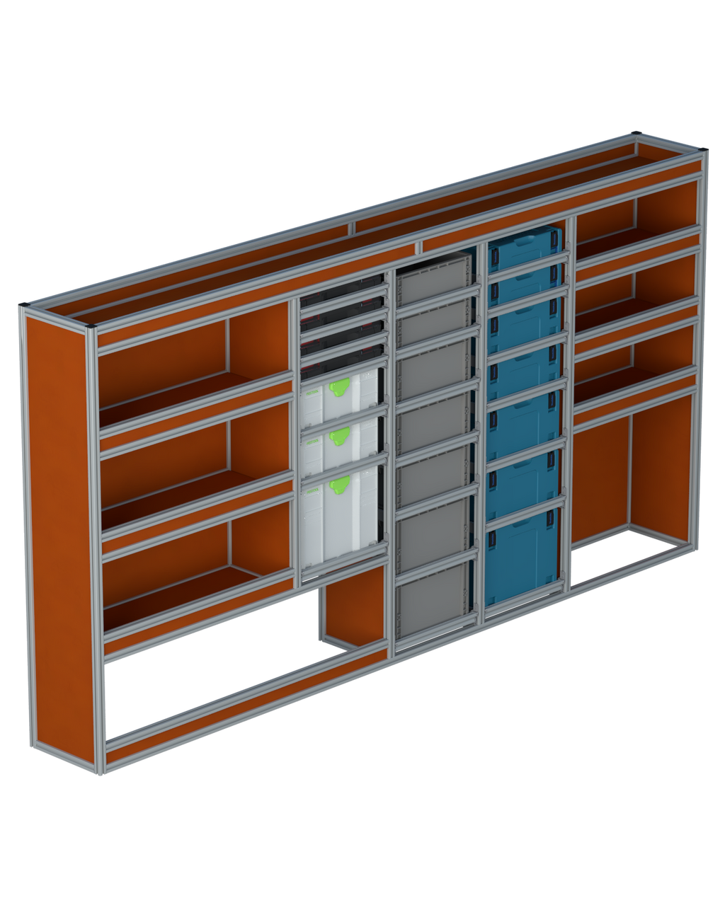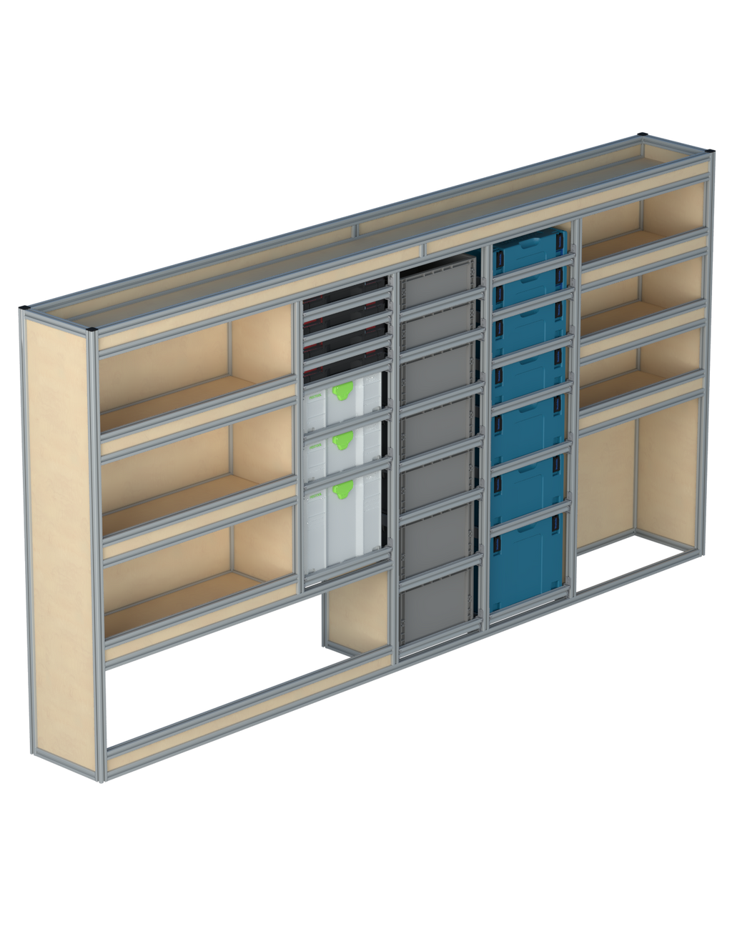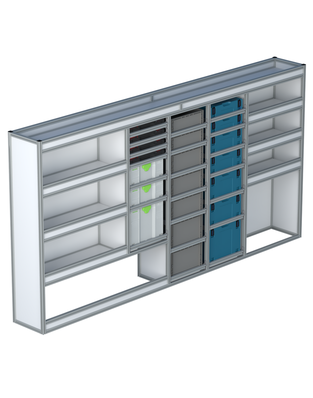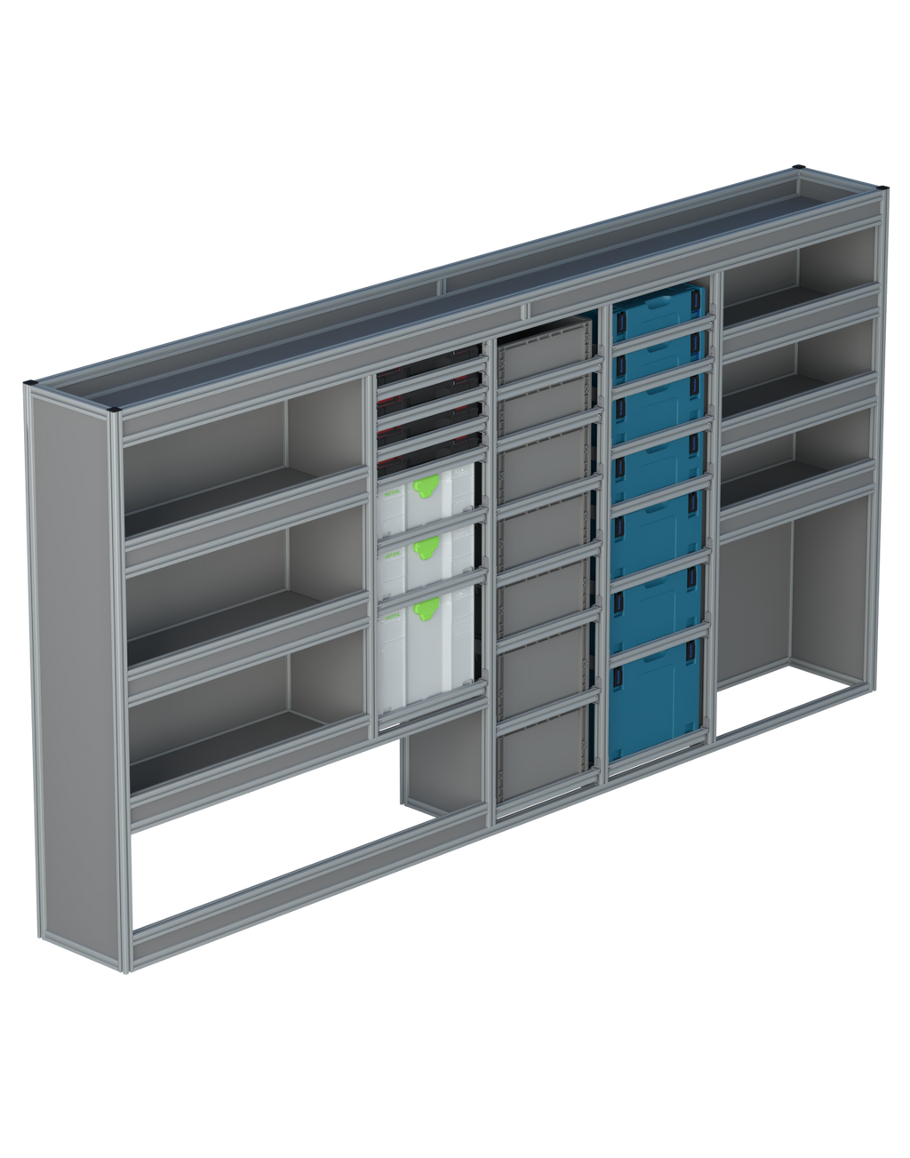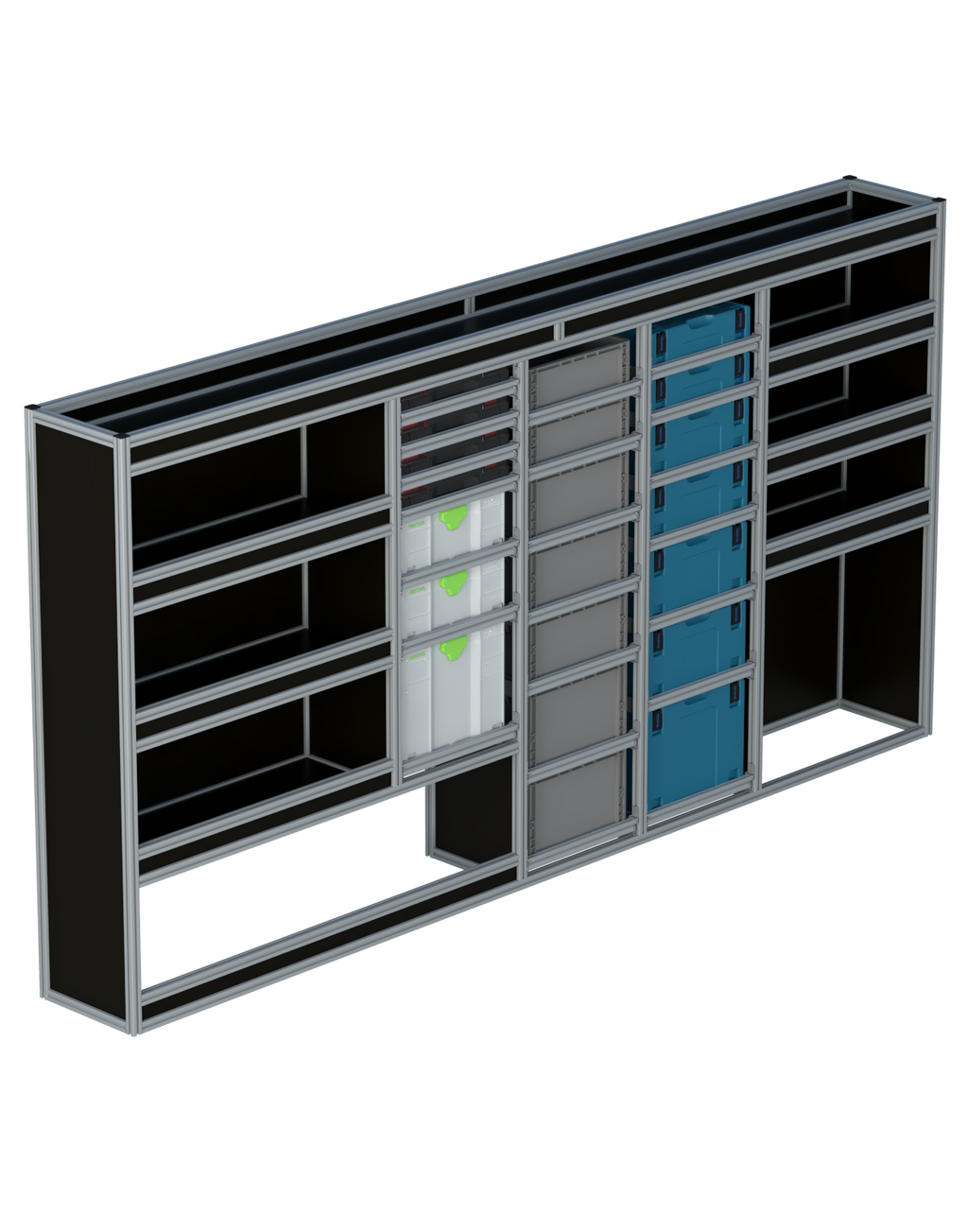 Alle lades zijn volledig traploos in hoogte verstelbaar en zijn later makkelijk weg te halen of bij te plaatsen. De lades zijn standaard voorzien van een goed doordachte ladevergrendeling om het open schuiven tijdens het rijden te voorkomen met een hoog gebruiksgemak.
