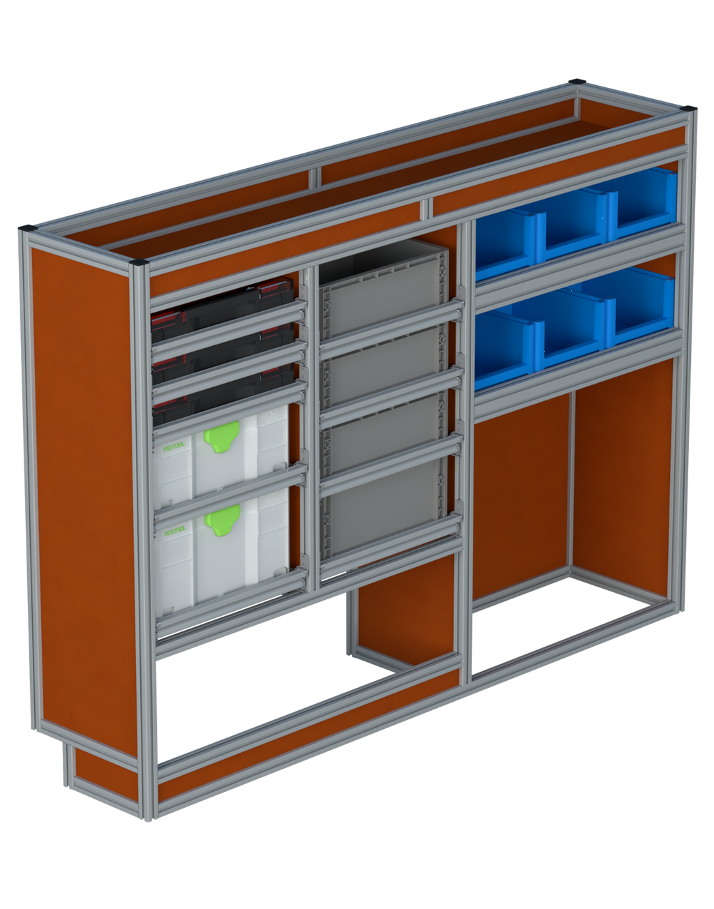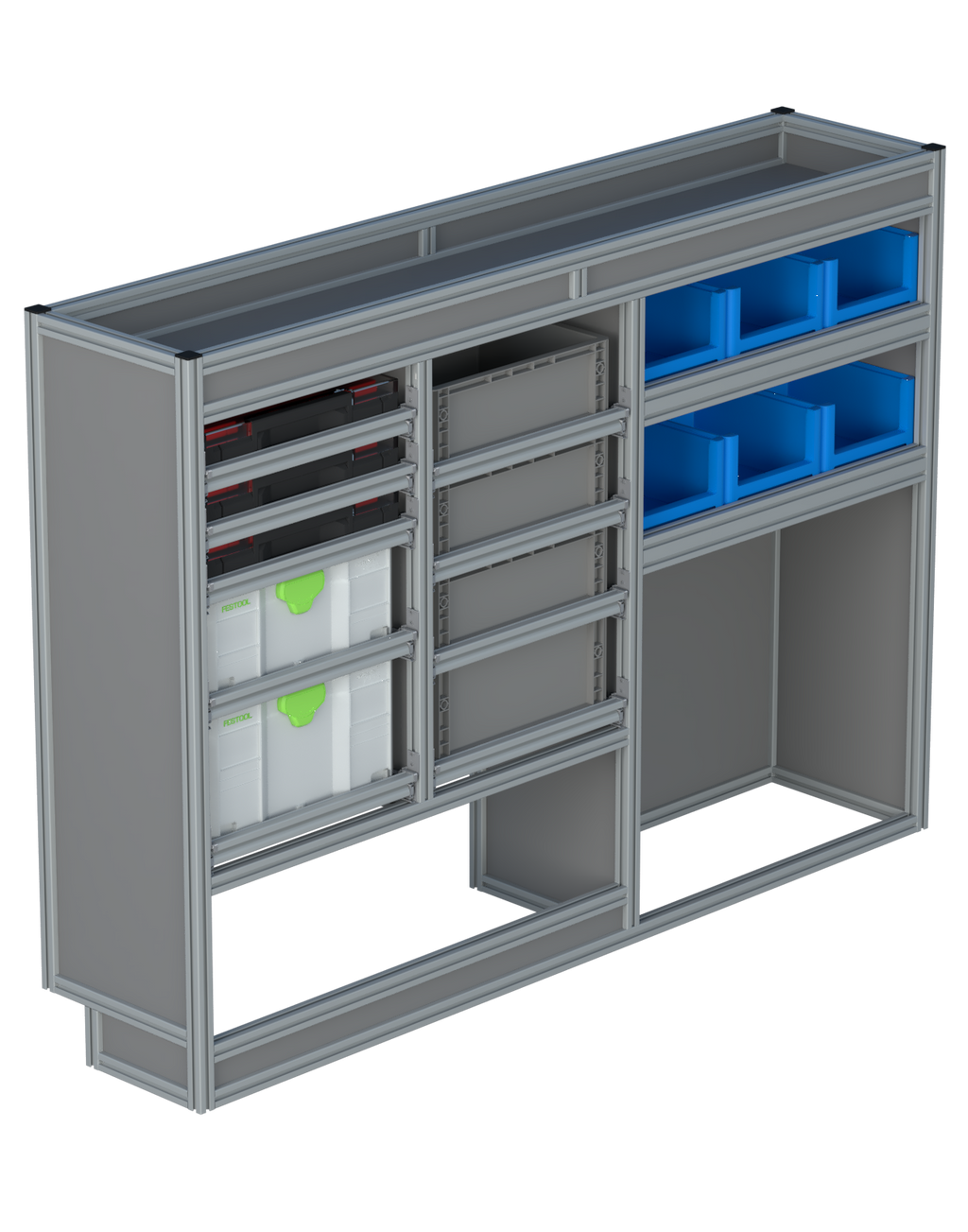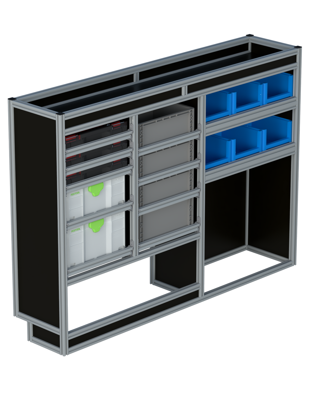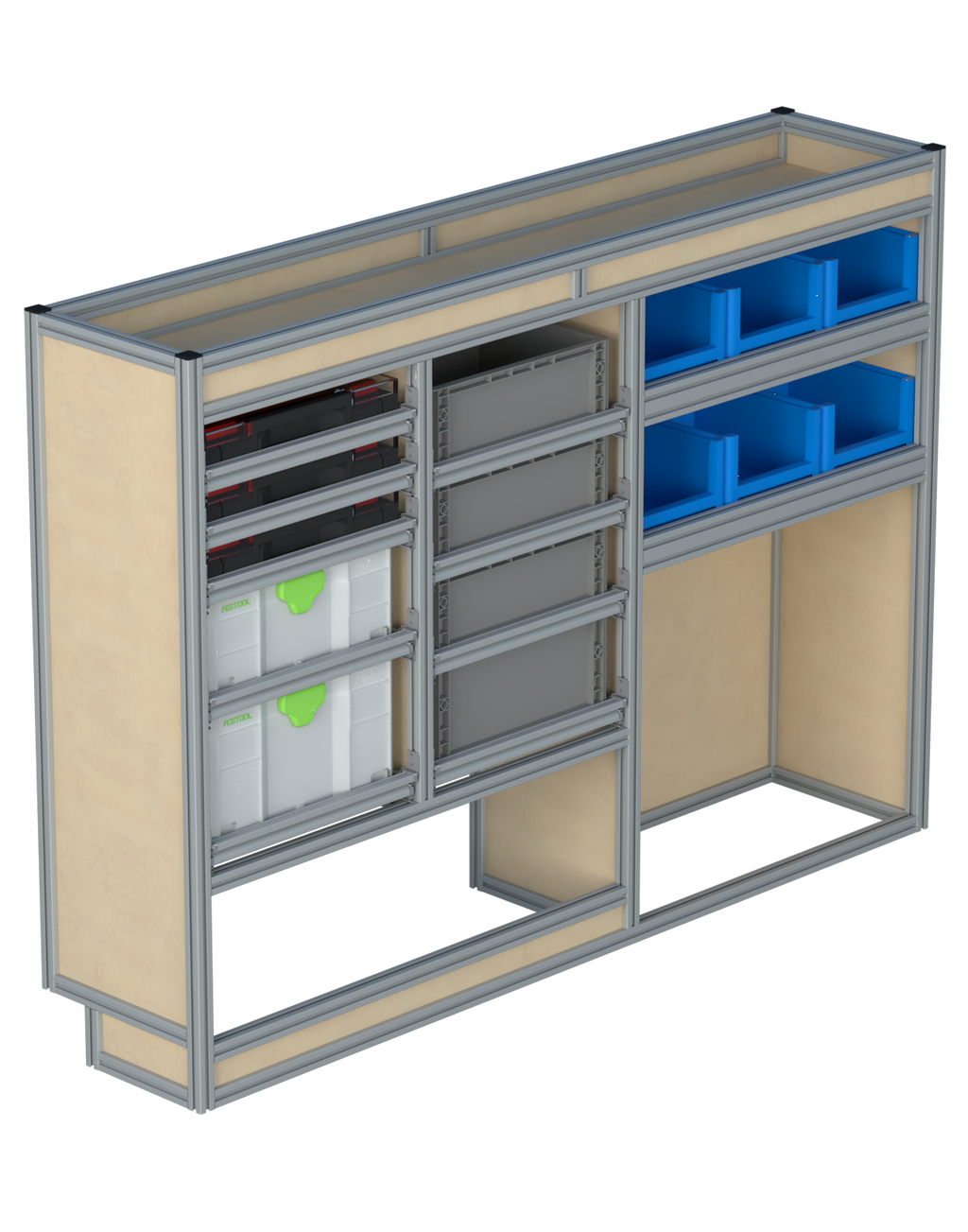 Alle lades zijn volledig traploos in hoogte verstelbaar en zijn later makkelijk weg te halen of bij te plaatsen. De lades zijn standaard voorzien van een goed doordachte ladevergrendeling om het open schuiven tijdens het rijden te voorkomen met een hoog gebruiksgemak.