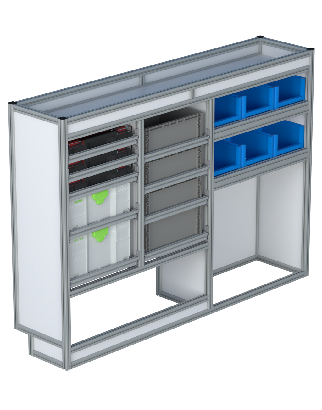 Open vakken: 3 open vakken met optionele magazijnbakken