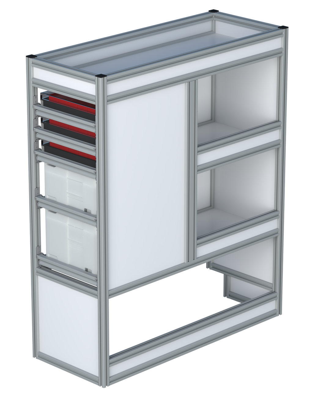 Alle lades zijn volledig traploos in hoogte verstelbaar en zijn later makkelijk weg te halen of bij te plaatsen. De lades zijn standaard voorzien van een goed doordachte ladevergrendeling om het open schuiven tijdens het rijden te voorkomen met een hoog gebruiksgemak.