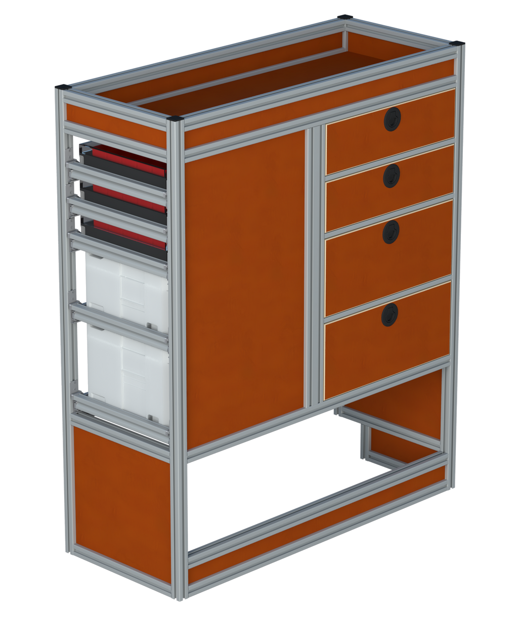 Een universeler systeem wat nog flexibeler in te zetten is dan je van ons al gewend was! Met een stevige aluminium handgreep trek je de lade eenvoudig volledig uit om jouw materialen te pakken of je koffer mee te nemen.