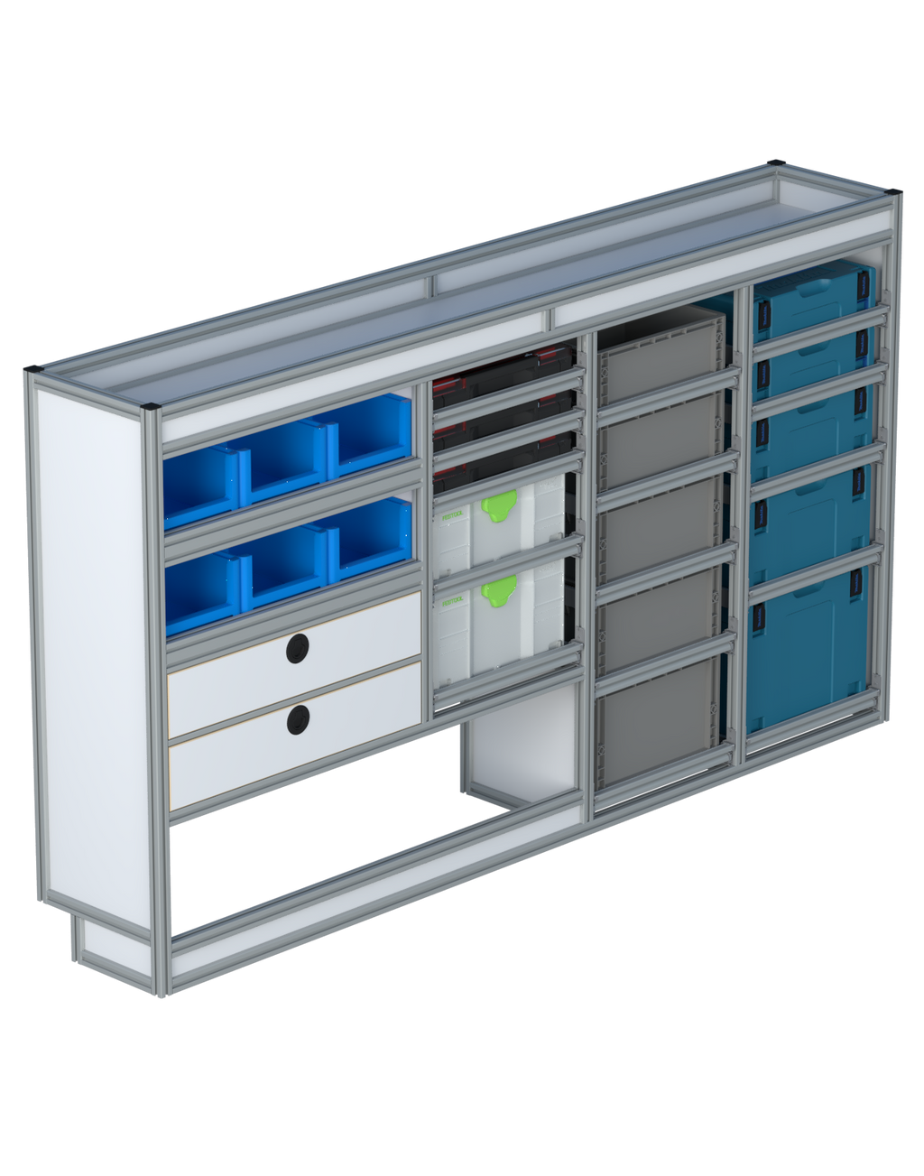 | Open vakken: | 2 open vakken met optionele magazijnbakken |