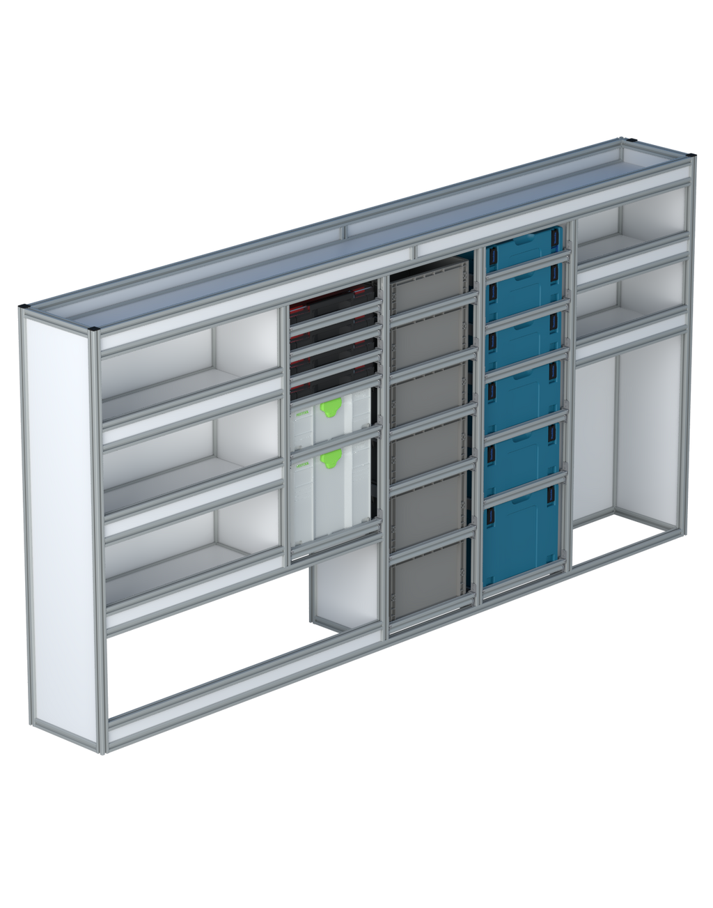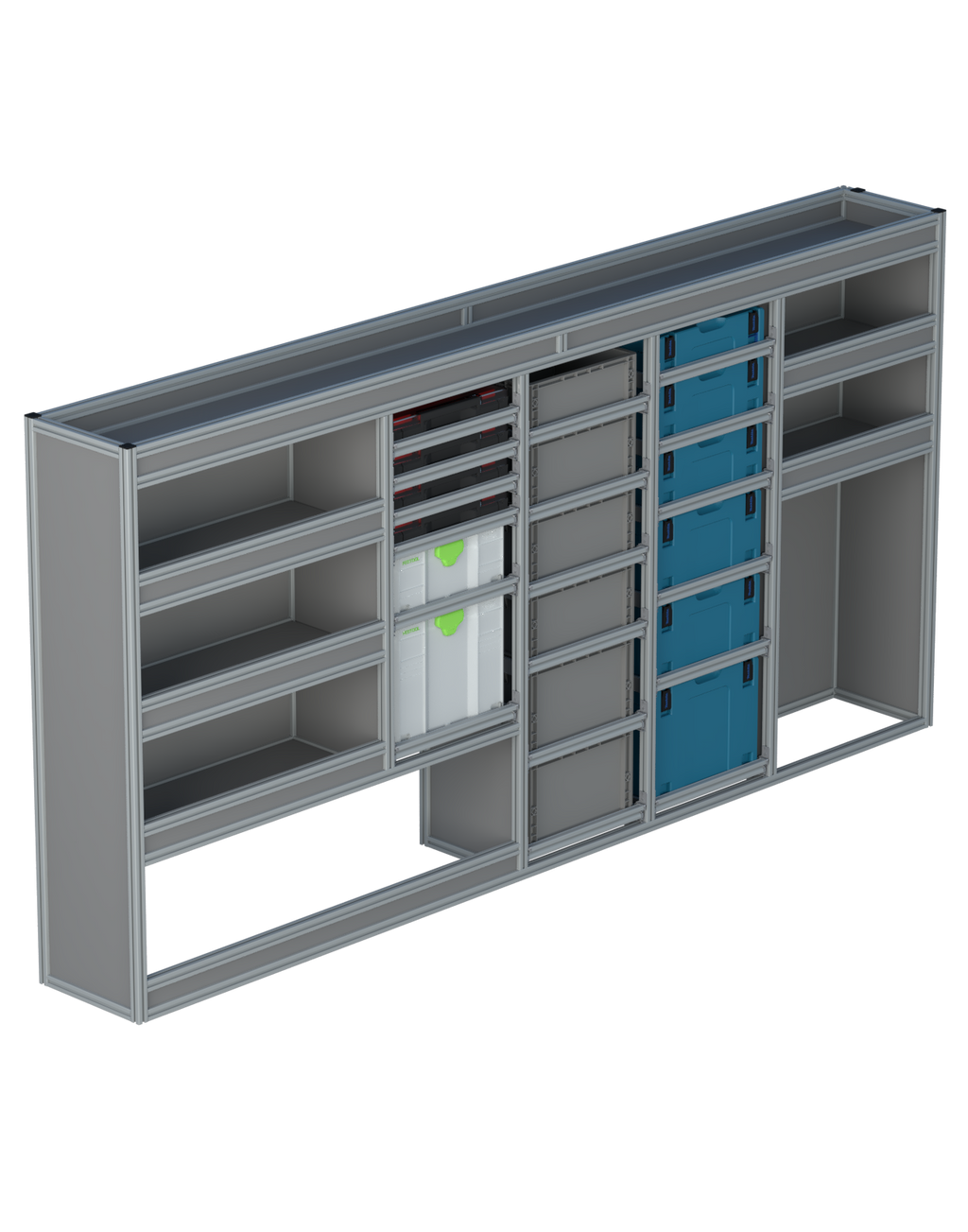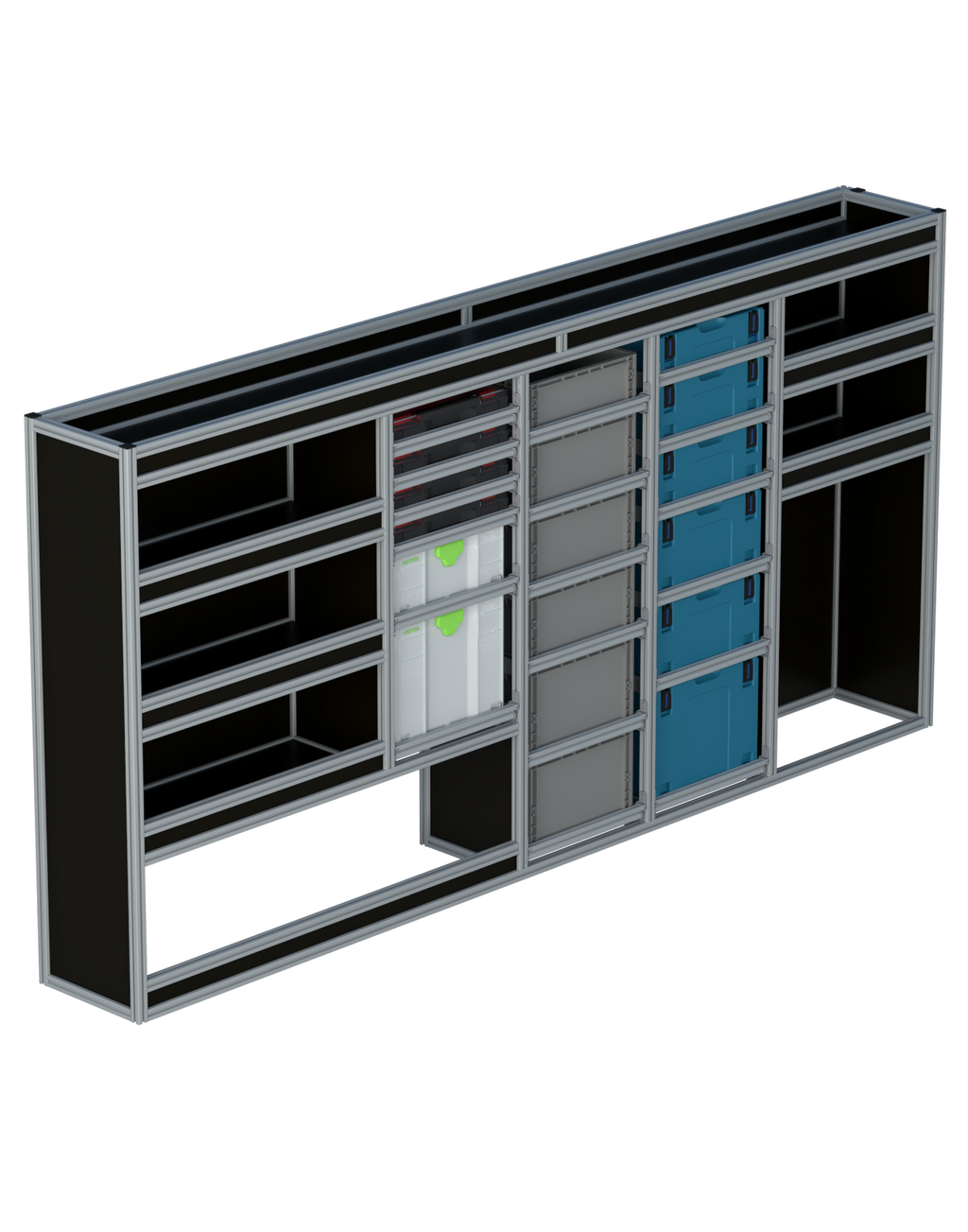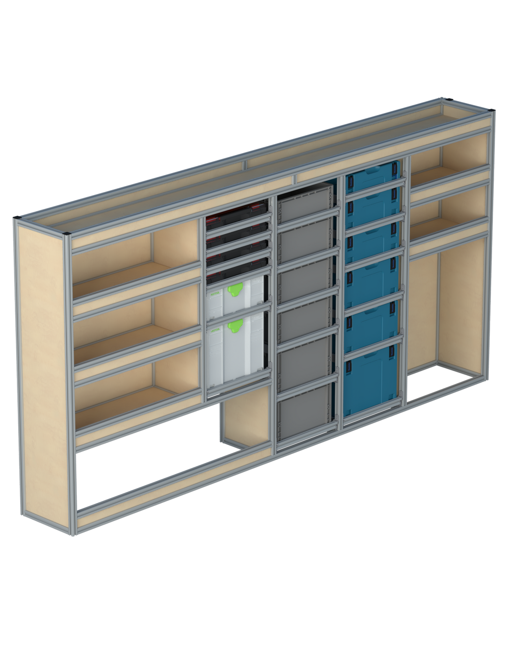 Alle lades zijn volledig traploos in hoogte verstelbaar en zijn later makkelijk weg te halen of bij te plaatsen. De lades zijn standaard voorzien van een goed doordachte ladevergrendeling om het open schuiven tijdens het rijden te voorkomen met een hoog gebruiksgemak.
