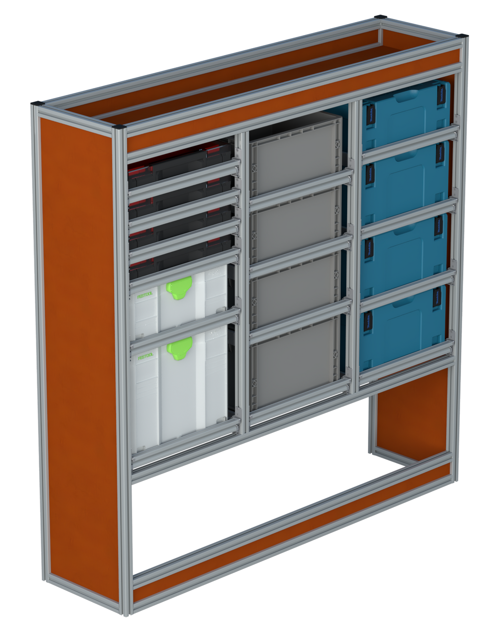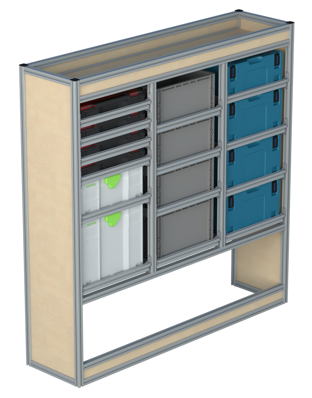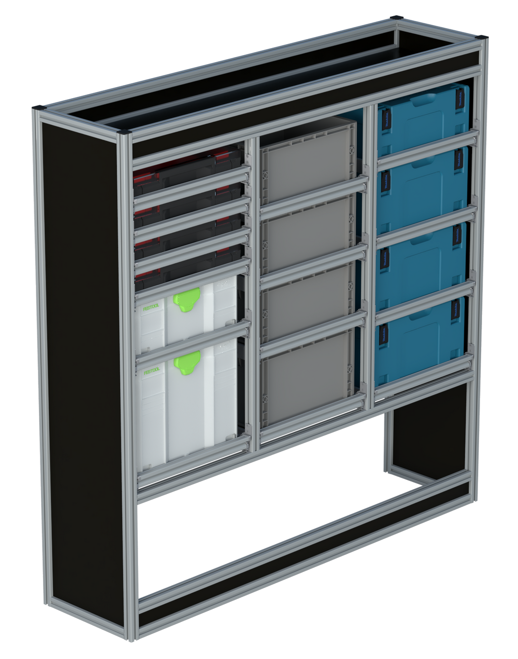 Alle lades zijn volledig traploos in hoogte verstelbaar en zijn later makkelijk weg te halen of bij te plaatsen. De lades zijn standaard voorzien van een goed doordachte ladevergrendeling om het open schuiven tijdens het rijden te voorkomen met een hoog gebruiksgemak.
