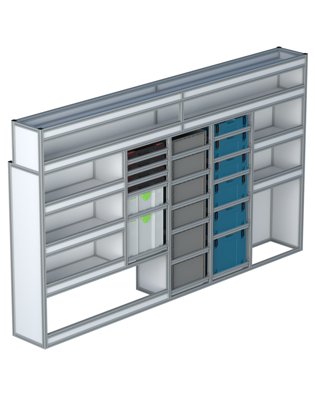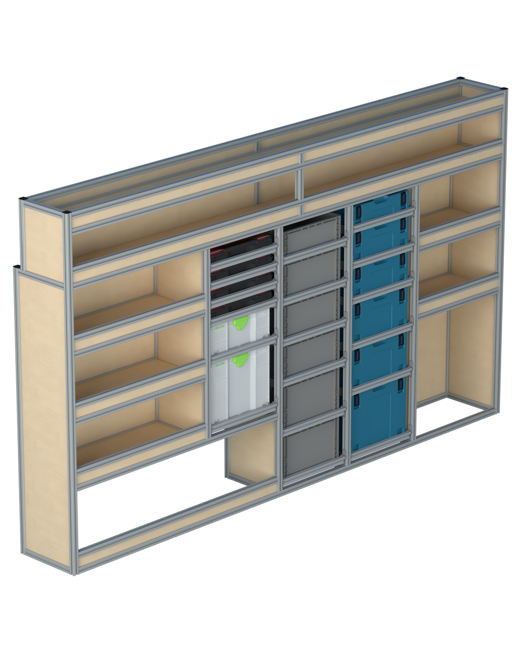Alle lades zijn volledig traploos in hoogte verstelbaar en zijn later makkelijk weg te halen of bij te plaatsen. De lades zijn standaard voorzien van een goed doordachte ladevergrendeling om het open schuiven tijdens het rijden te voorkomen met een hoog gebruiksgemak.