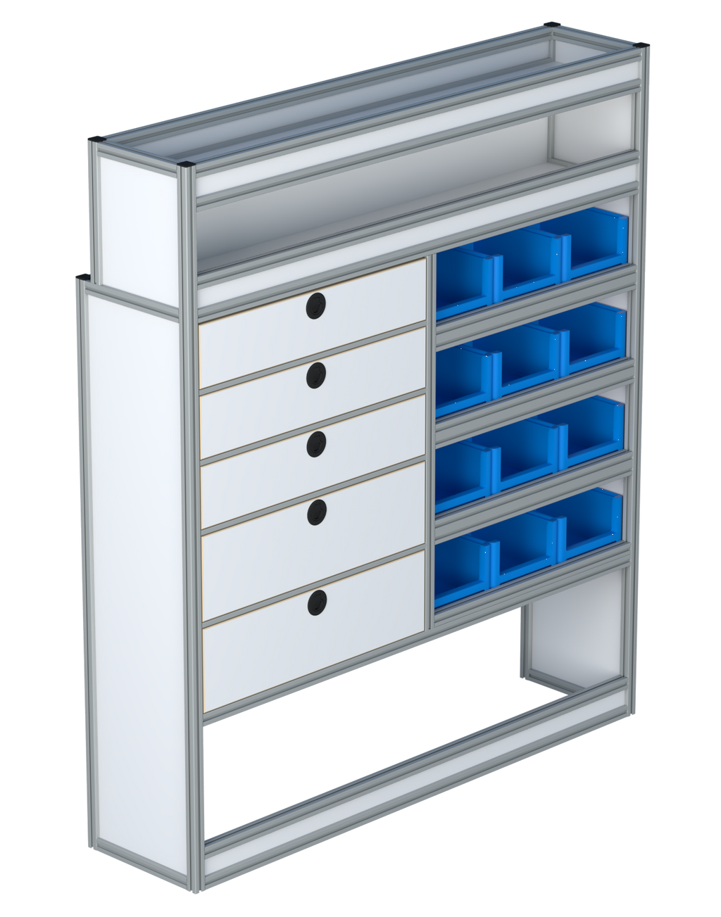 | Open vakken: | 4 open vakken met optionele magazijnbakken |