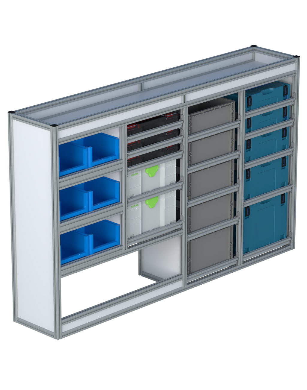 Alle lades zijn volledig traploos in hoogte verstelbaar en zijn later makkelijk weg te halen of bij te plaatsen. De lades zijn standaard voorzien van een goed doordachte ladevergrendeling om het open schuiven tijdens het rijden te voorkomen met een hoog gebruiksgemak.