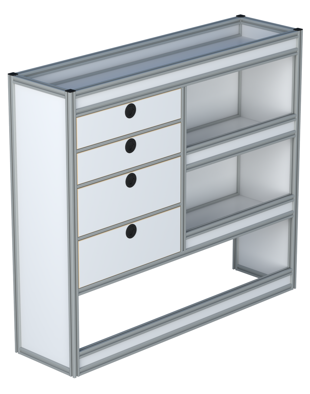 Een universeler systeem wat nog flexibeler in te zetten is dan je van ons al gewend was! Met een stevige aluminium handgreep trek je de lade eenvoudig volledig uit om jouw materialen te pakken of je koffer mee te nemen.