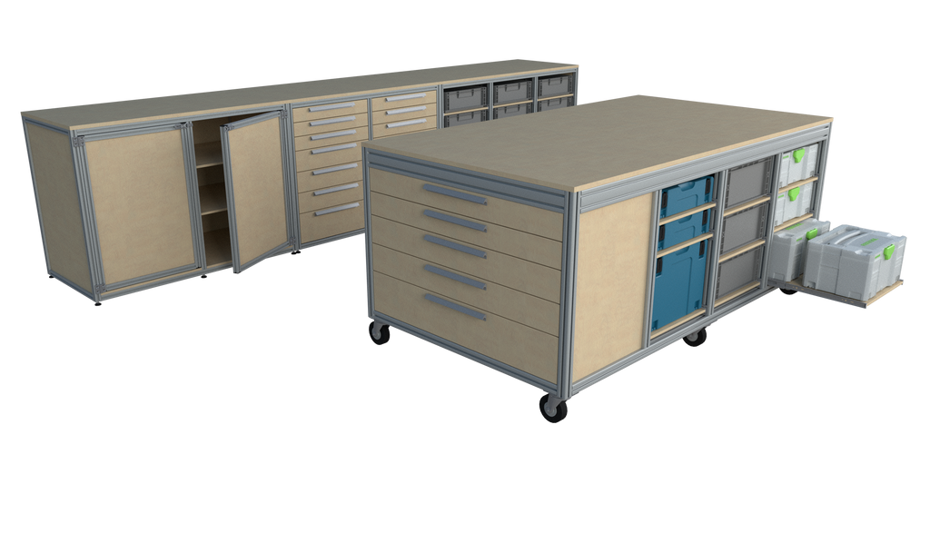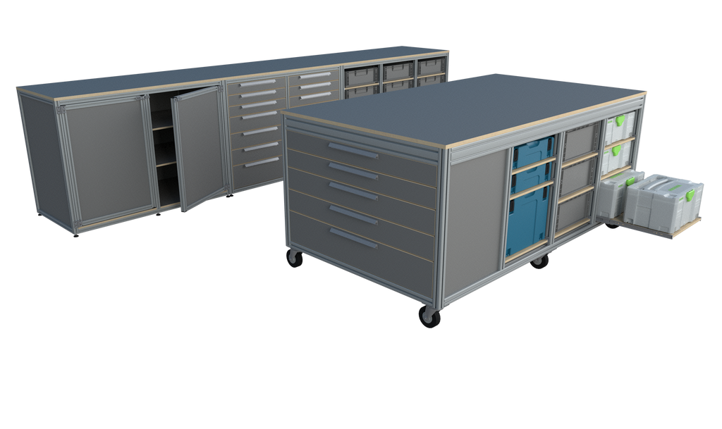 Deze werkplaatsinrichting wordt compleet geleverd inclusief de afgebeelde boxen, een strak totaalplaatje!
